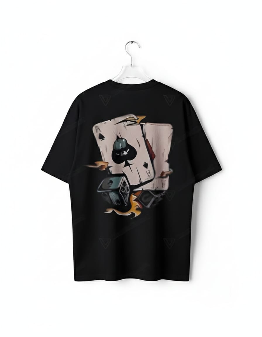 Drop Shoulder Playing Cards Printed T-Shirt – Black | Oversized Streetwear